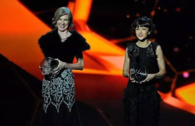 盛装亮相的两位女科学家。2014 年11 月,杜德纳(左)和卡彭蒂耶(右)一同获得了由硅 谷创业精英(包括脸书创始人Mark Zuckerberg,谷歌联合创始人Sergey Brin 等人)设立 的生命科学突破奖(Breakthrough Prize in Life Scienc-es),并获得了每人300 万美元 的奖金,这也是史上数额最大的科学奖项。